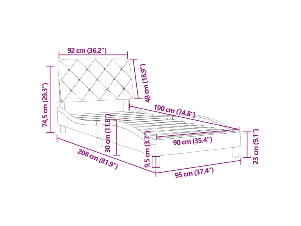 - Vhodná velikost matrace: 90 x 190 cm (Š x D) (matrace není součástí balení)