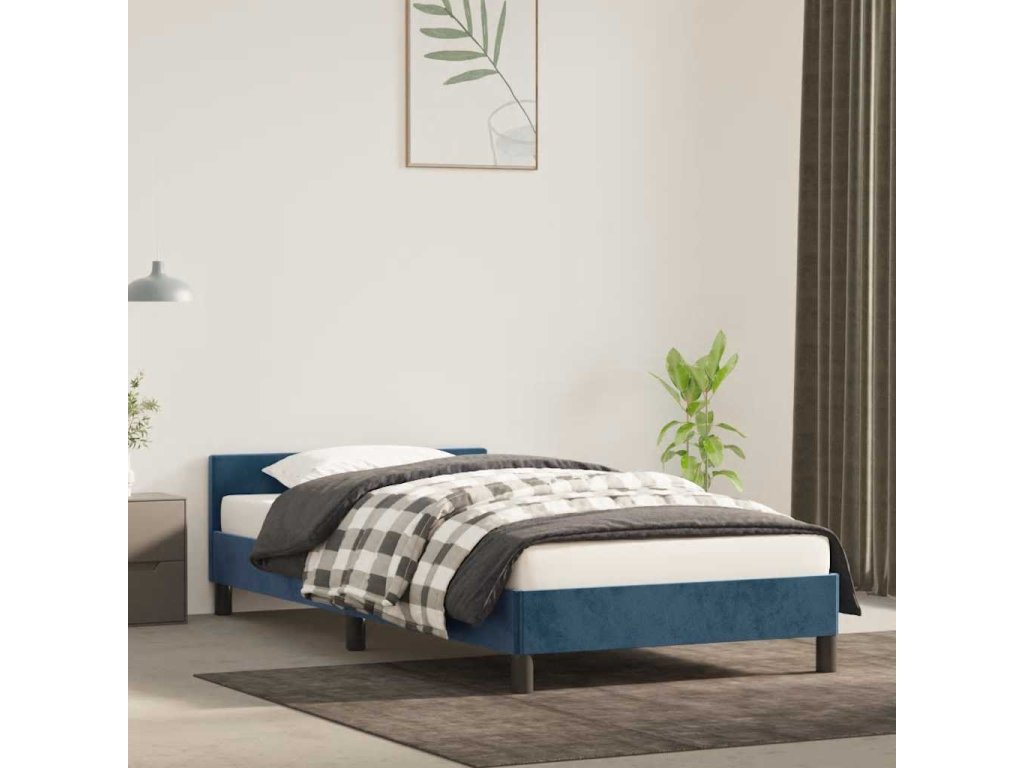 Rám postele bez matrace tmavě modrý 90x200 cm samet 347553