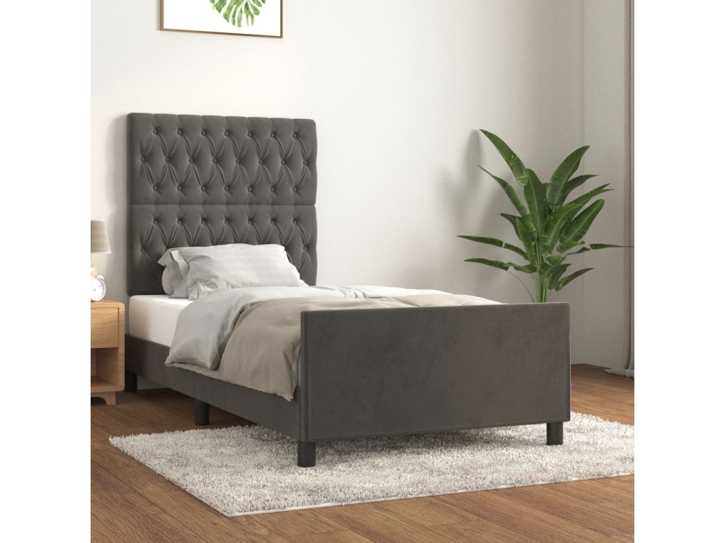 Rám postele bez matrace tmavě šedá 90 x 190 cm samet 3125911