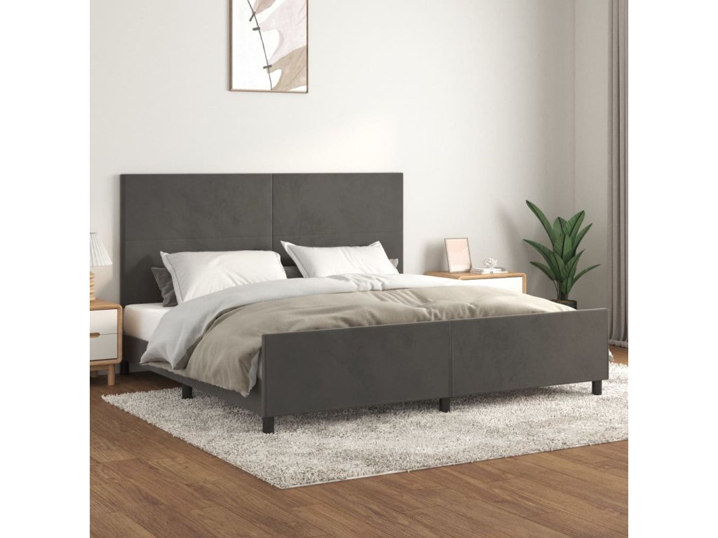 Rám postele bez matrace tmavě šedý 200 x 200 cm samet 3125654