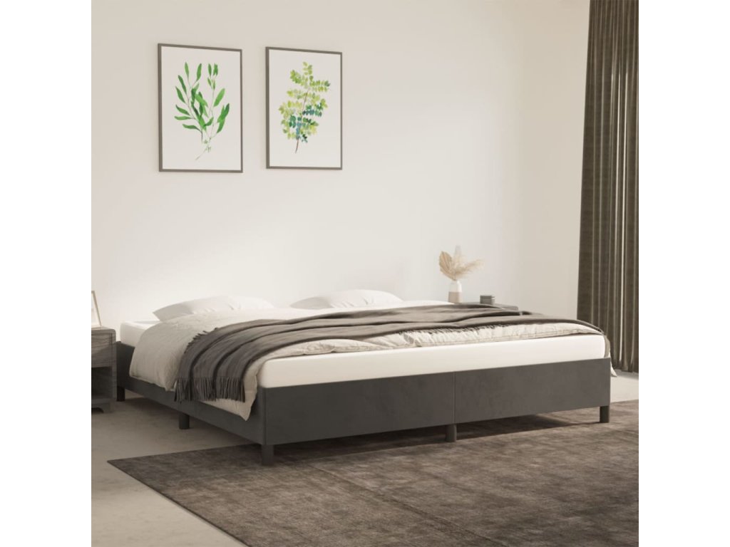 Rám postele bez matrace tmavě šedý 200 x 200 cm samet 347343