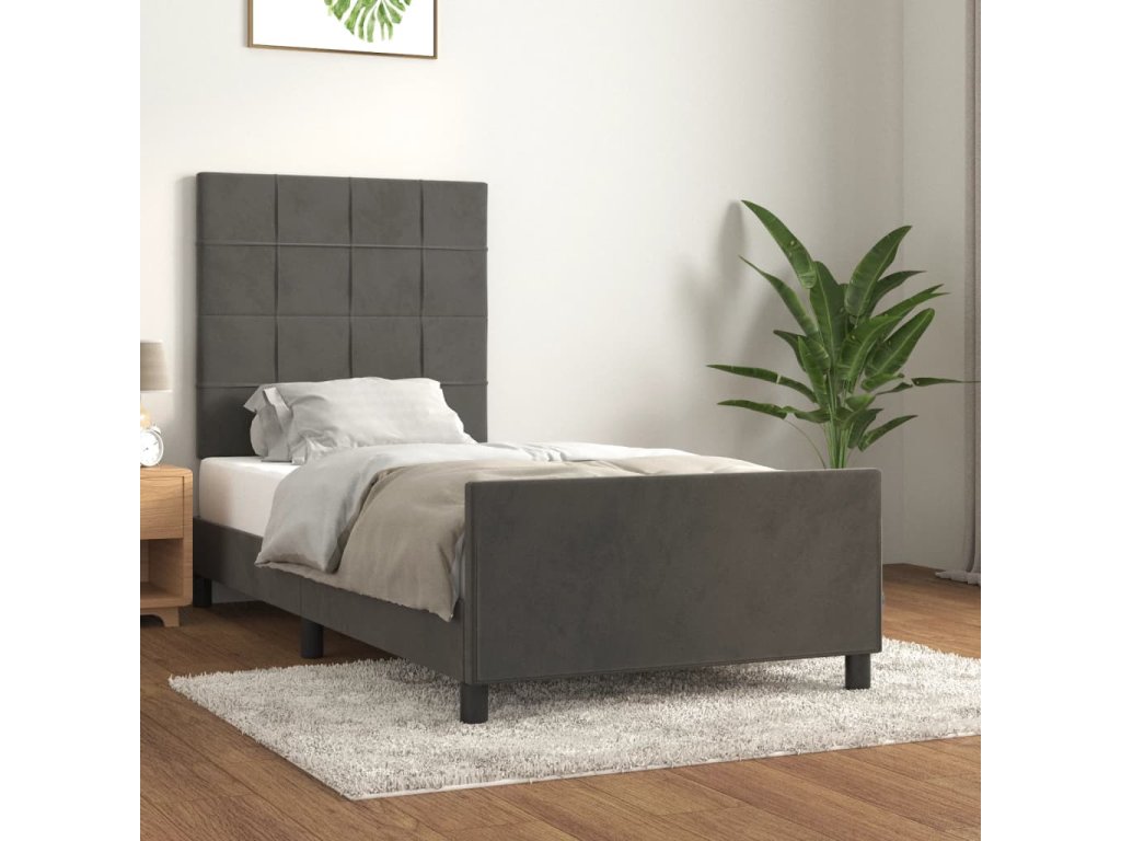 Rám postele bez matrace tmavě šedý 90 x 200 cm samet 3125734