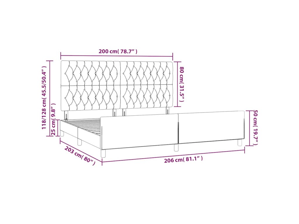 - Celkové rozměry: 203 x 206 x 118/128 cm (D x Š x V)