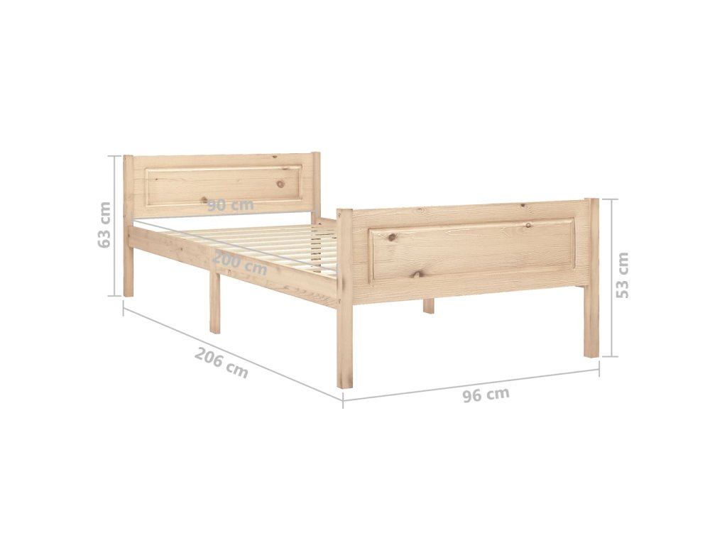Rám postele bez matrace z masivního borovicového dřeva 90x200cm 322096