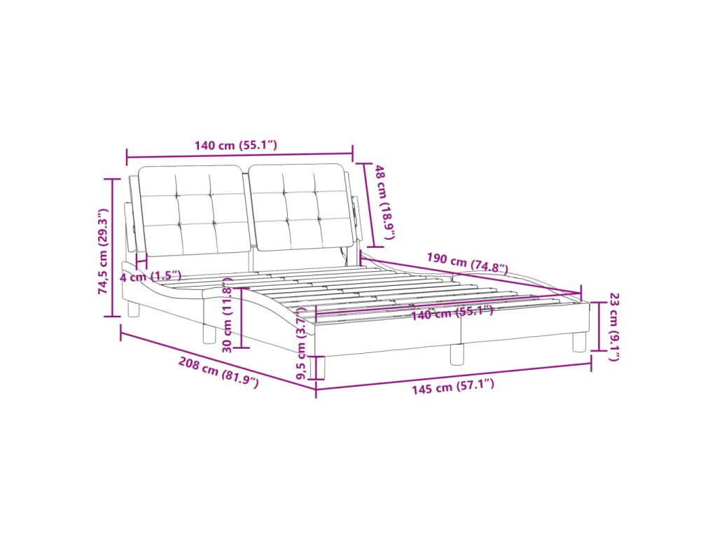 - Vhodná velikost matrace: 140 x 190 cm (Š x D) (matrace není součástí balení)