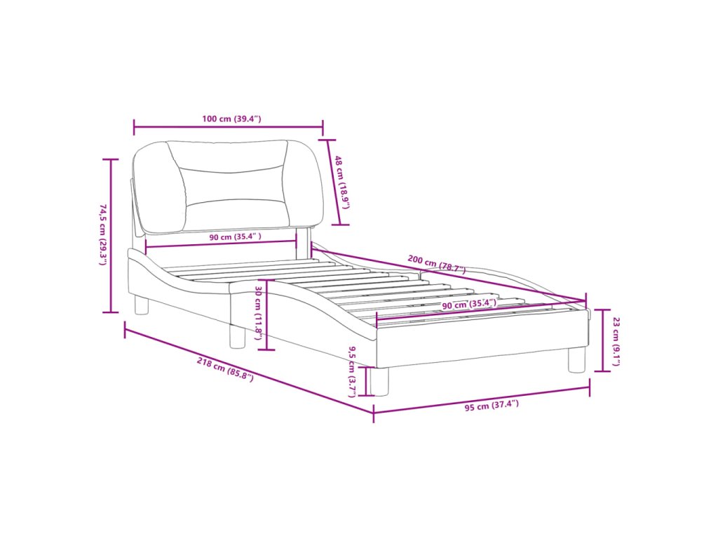 - Vhodná velikost matrace: 90 x 200 cm (Š x D) (matrace není součástí balení)