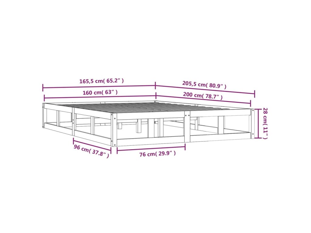 Rám postele bílý 160 x 200 cm masivní dřevo 820807