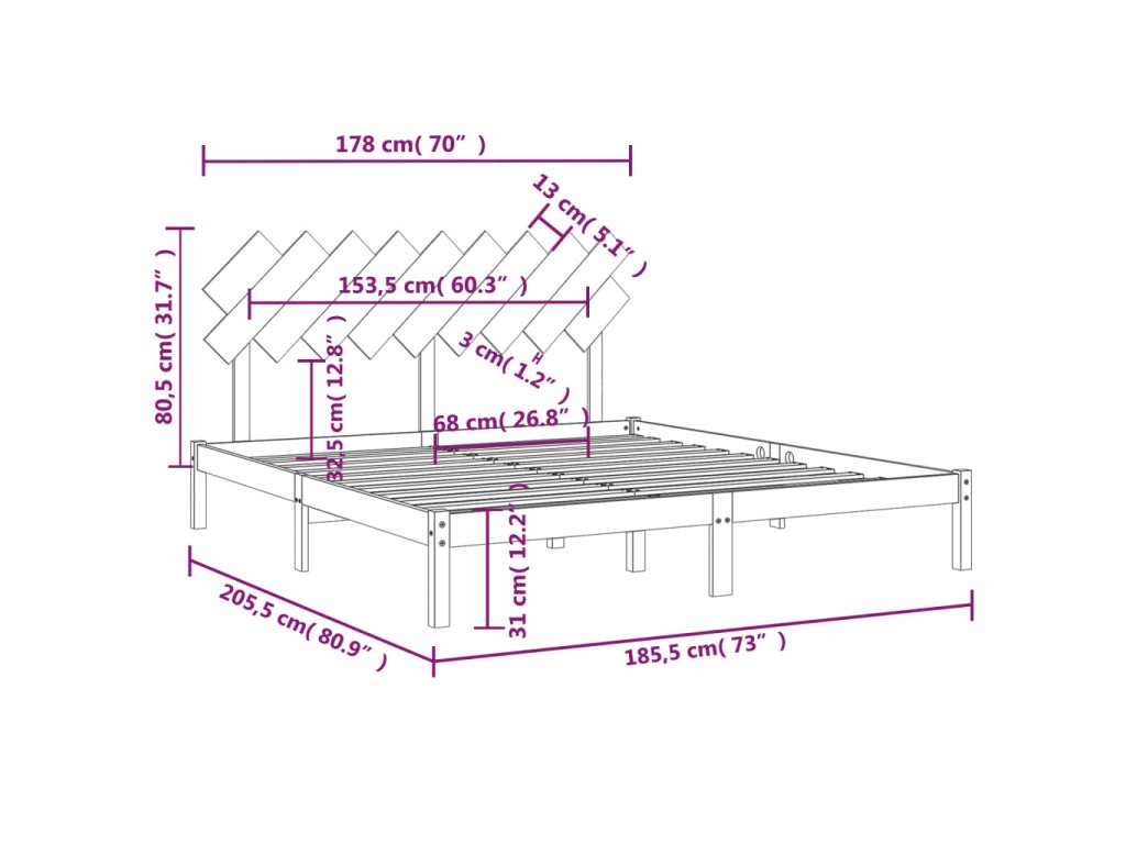- Rozměry rámu postele: 205,5 x 185,5 x 31 cm (D x Š x V)