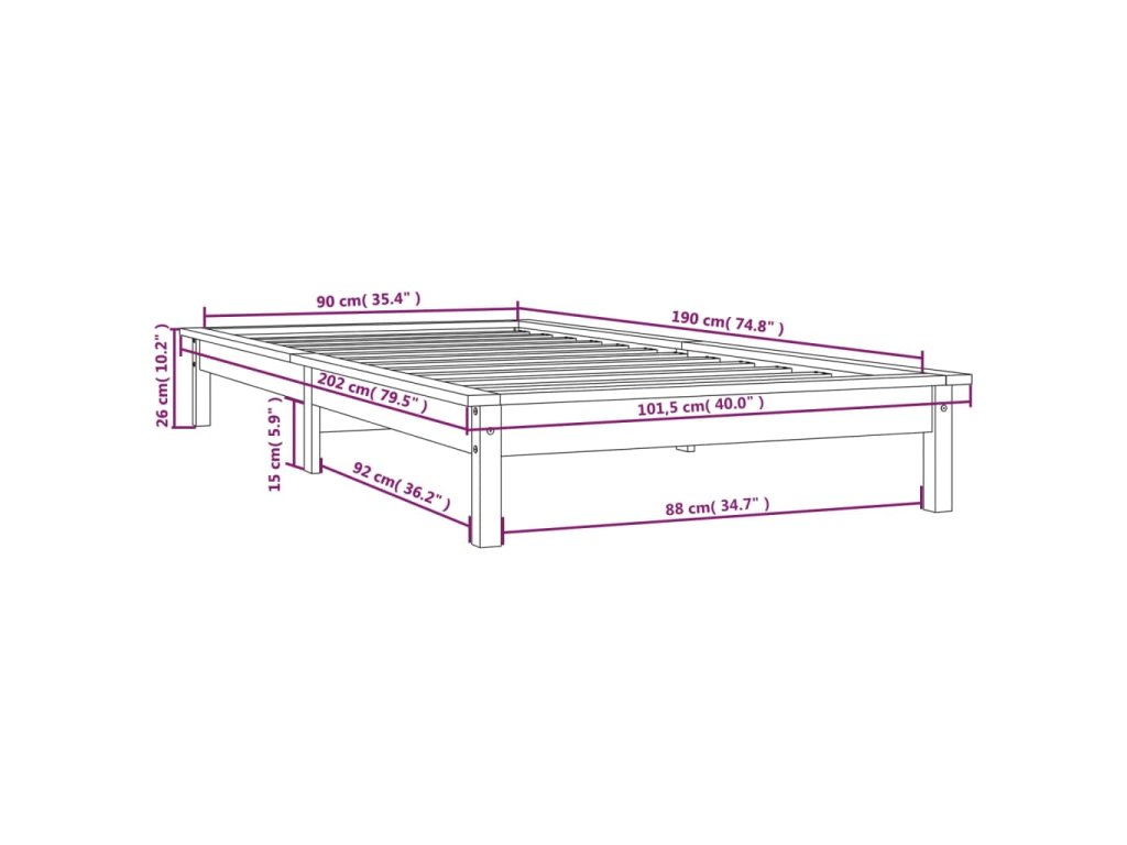 - Tento rám postele je vhodný pro matrace o rozměrech 90 x 190 cm (3FT Single).