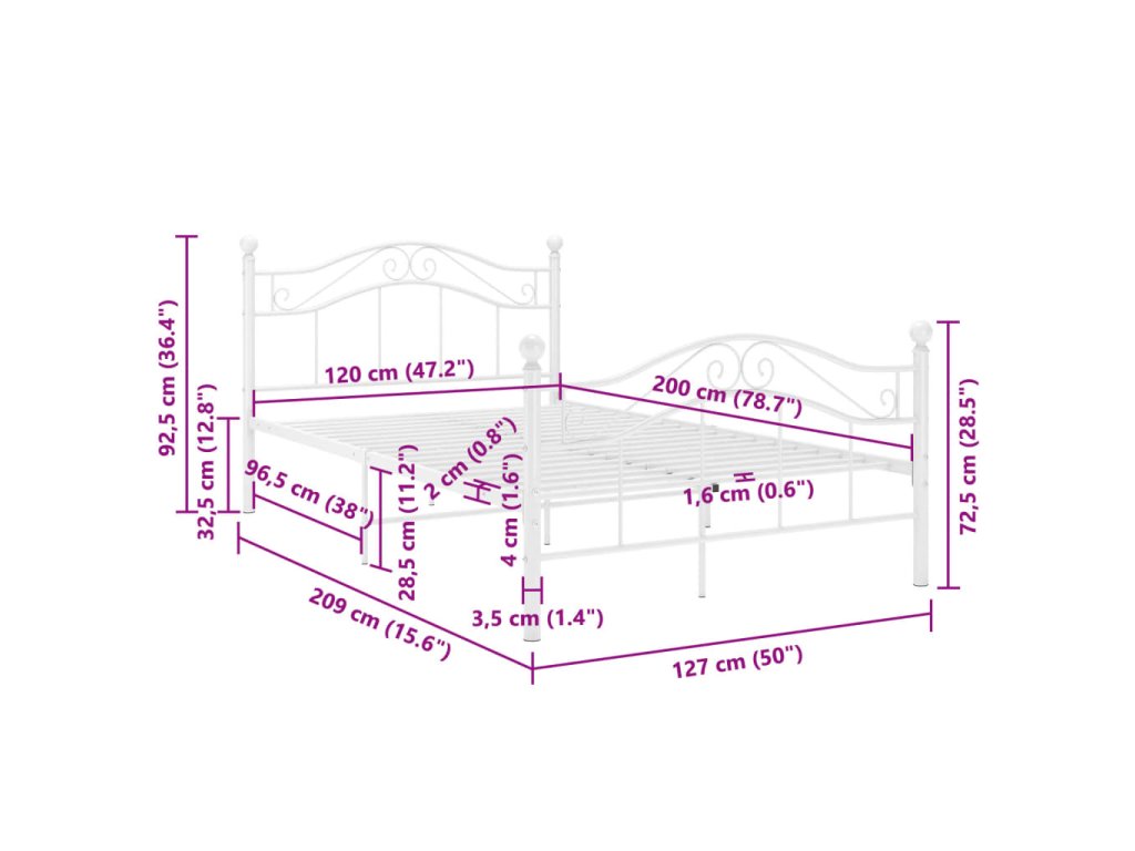 Rám postele bílý kov 120 x 200 cm 324995