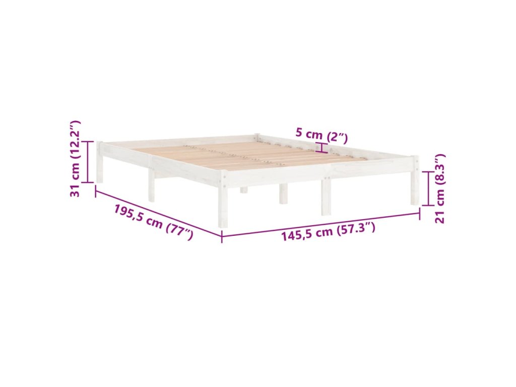 Rám postele bílý masivní borové dřevo 140 x 190 cm 809998