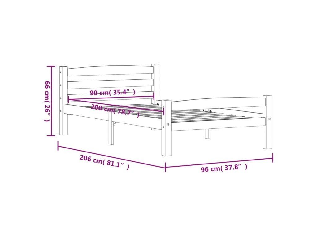 Rám postele bílý masivní borové dřevo 90 x 200 cm 322068