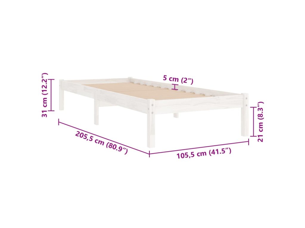 Rám postele bílý masivní borovice 100 x 200 cm 810008