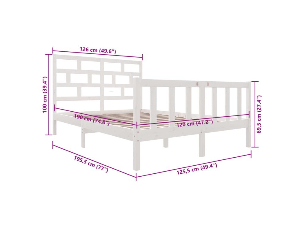 - Rozměry rámu postele: 205,5 x 125,5 x 69,5 cm (D x Š x V)