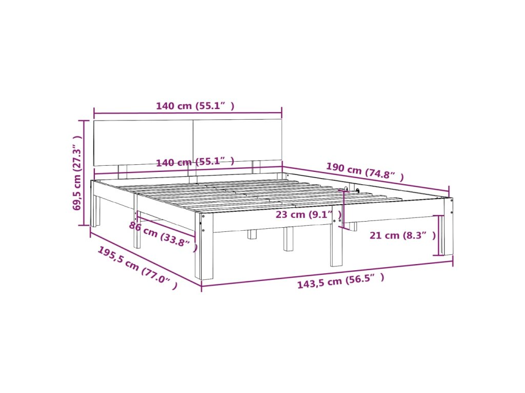Rám postele bílý masivní borovice 140 x 190 cm 810476