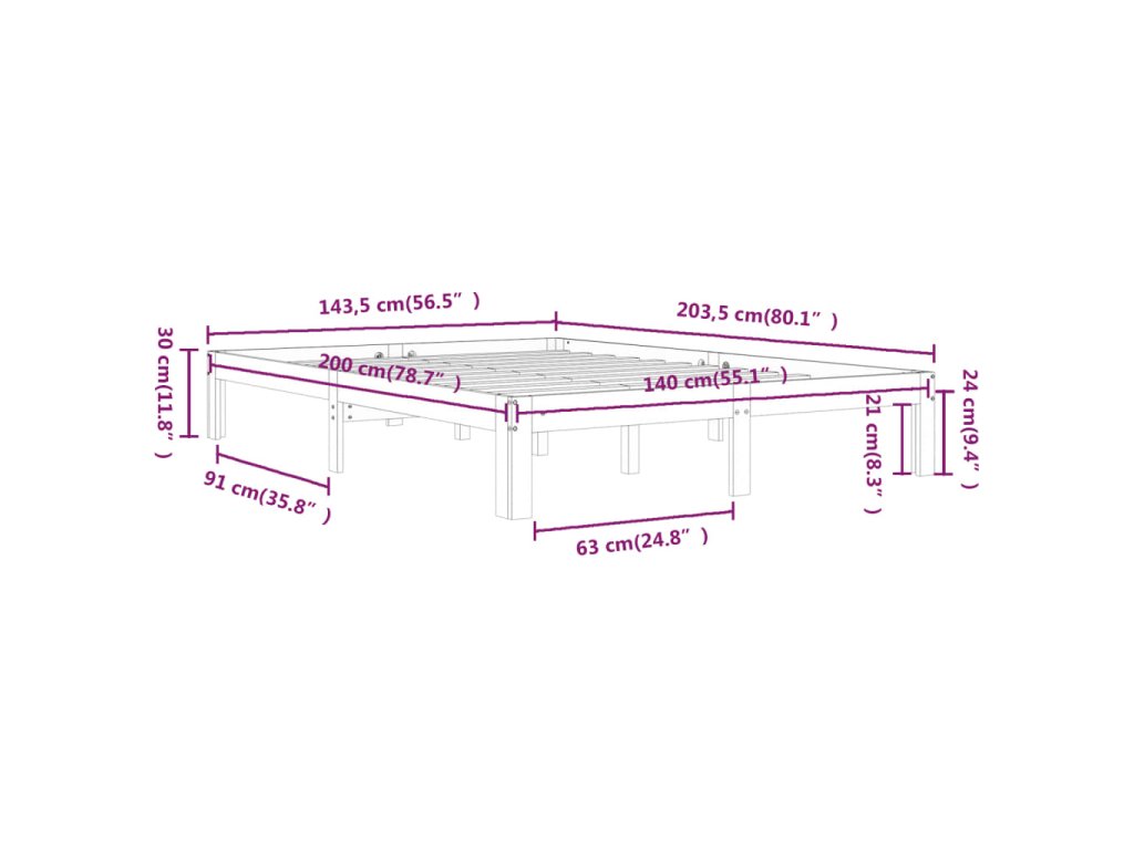 Rám postele bílý masivní borovice 140 x 200 cm 810366