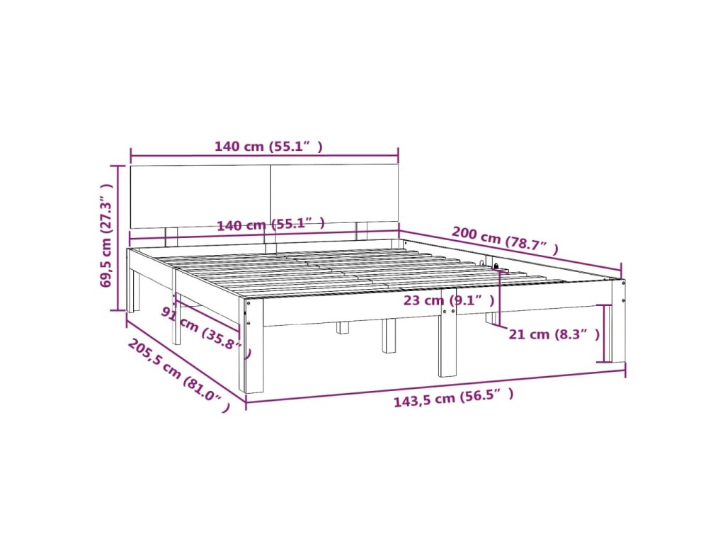 Rám postele bílý masivní borovice 140 x 200 cm 810496