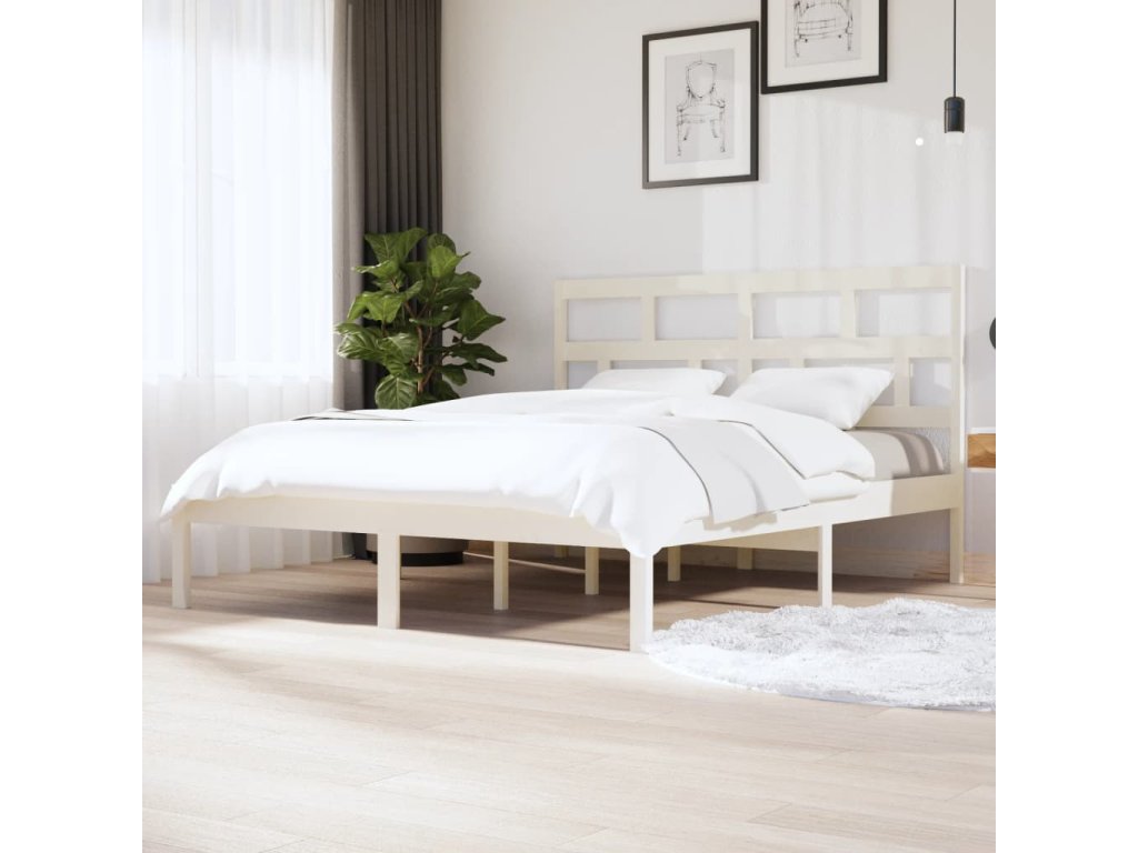 Rám postele bílý masivní borovice 160 x 200 cm 3101229