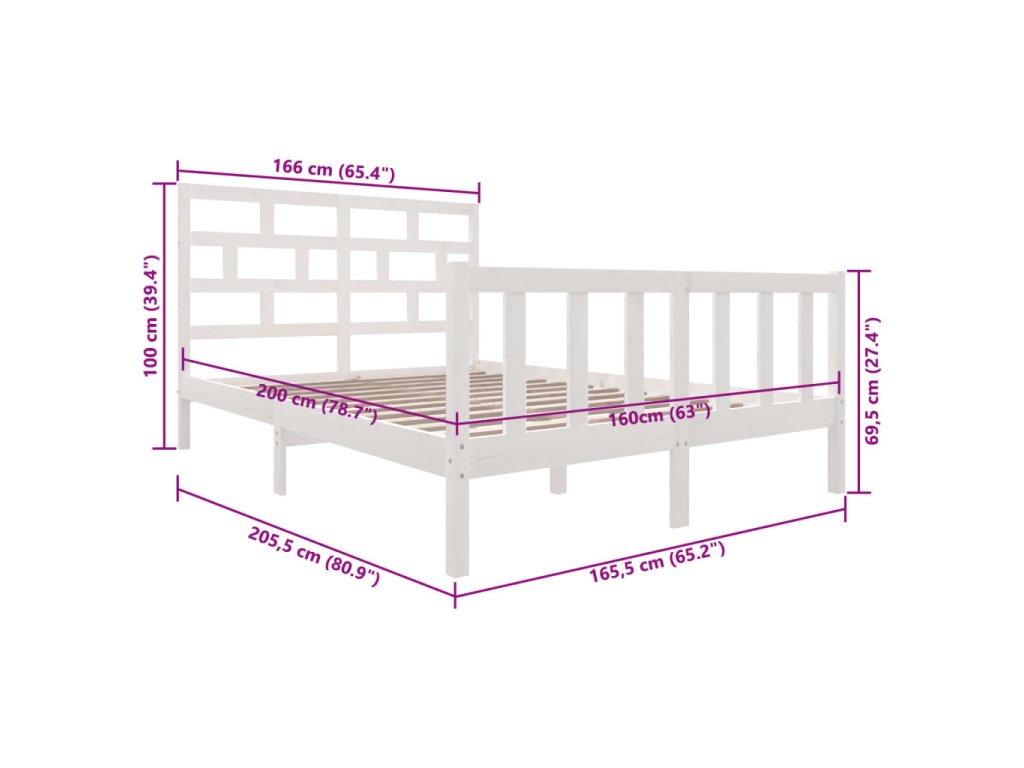 - Rozměry rámu postele: 205,5 x 165,5 x 69,5 cm (D x Š x V)