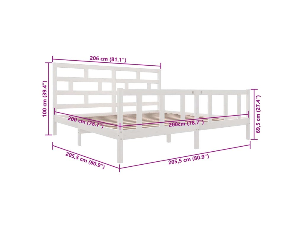 Rám postele bílý masivní borovice 200 x 200 cm 3101369