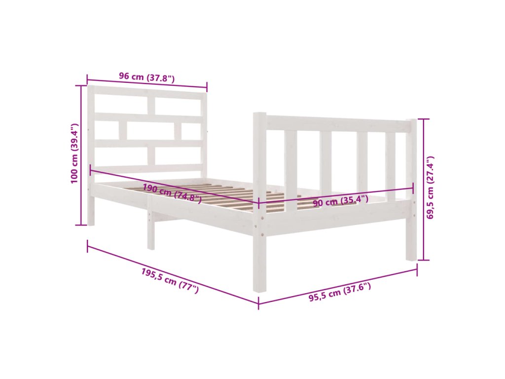 - Rozměry rámu postele: 195,5 x 95,5 x 69,5 cm (D x Š x V)