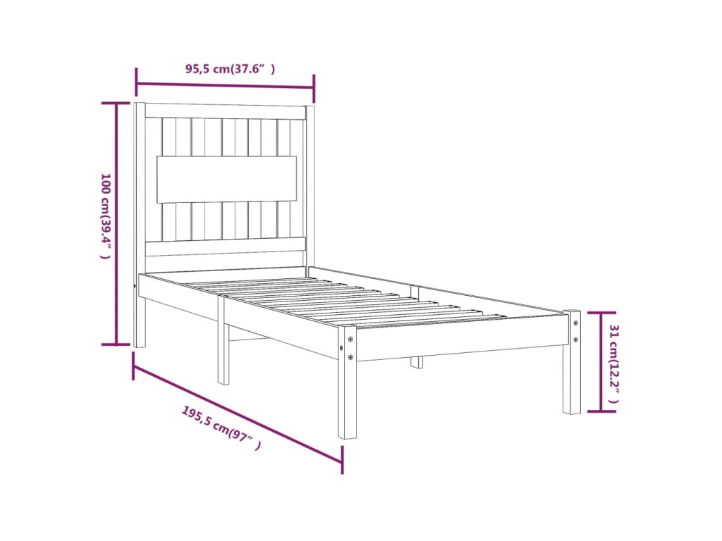 - Rozměry rámu postele: 195,5 x 95,5 x 31 cm (D x Š x V)