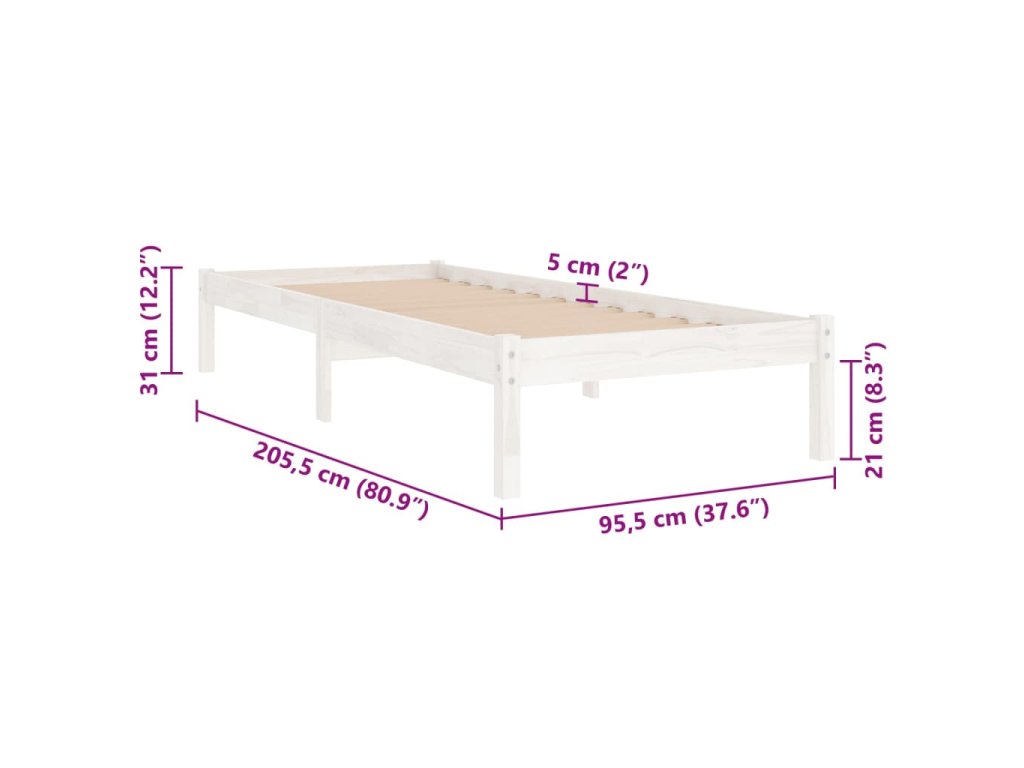 Rám postele bílý masivní borovice 90 x 200 cm 810003
