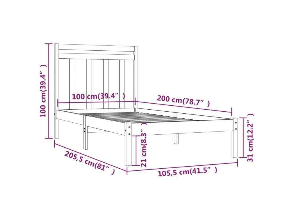 - Rozměry rámu postele: 205,5 x 105,5 x 31 cm (D x Š x V)