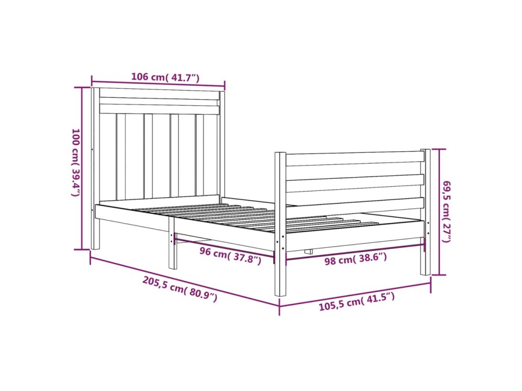 - Rozměry rámu postele: 205,5 x 105,5 x 69,5 cm (D x Š x V)