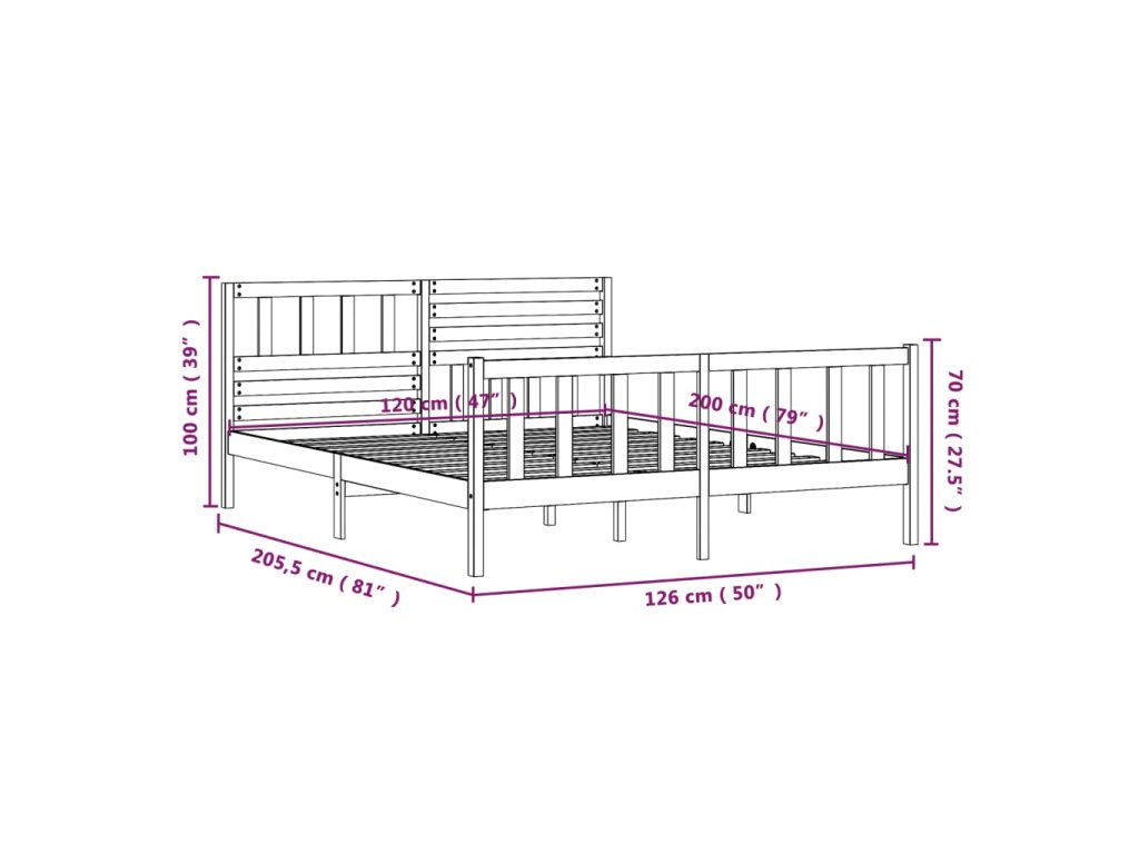 - Celkové rozměry rámu postele: 205,5 x 126 x 100 cm (D x Š x V)