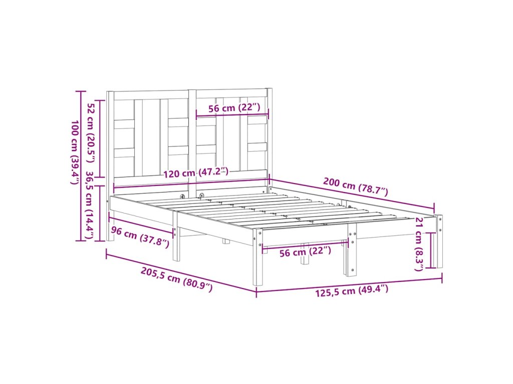 - Rozměry rámu postele: 205,5 x 125,5 x 31 cm (D x Š x V)