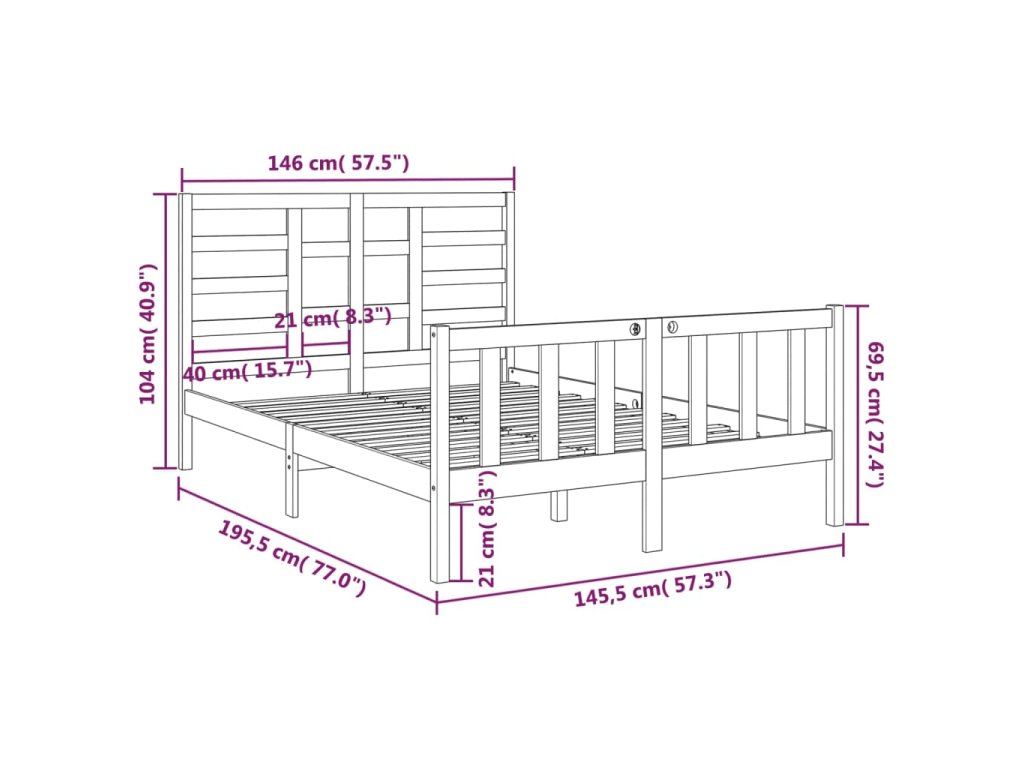 Rám postele bílý masivní dřevo 140 x 190 cm 3105906