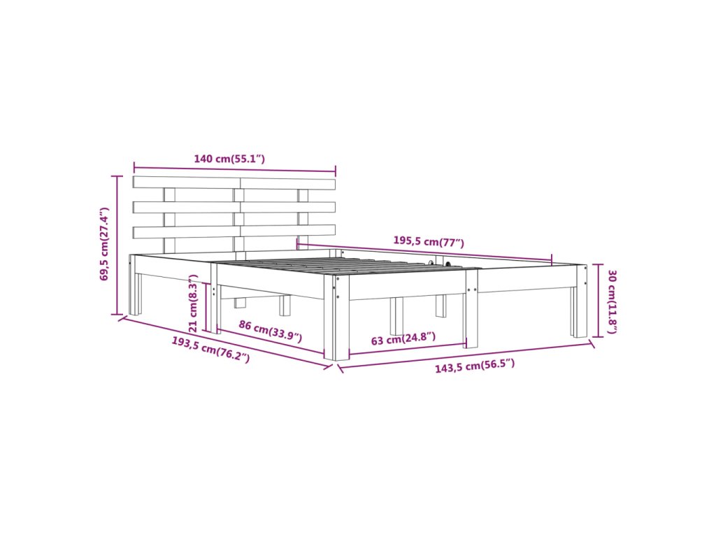Rám postele bílý masivní dřevo 140 x 190 cm 814735