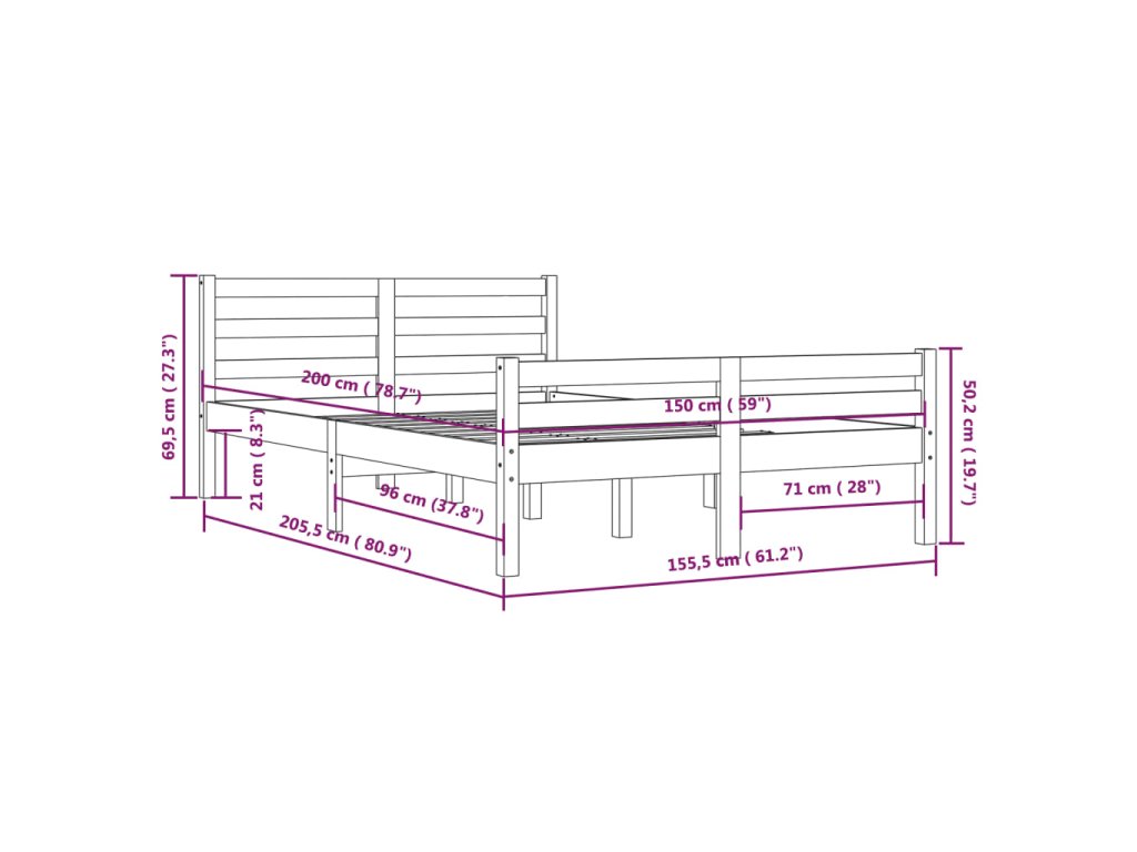 - Tento rám postele je vhodný pro matrace o rozměrech 150 x 200 cm (5FT King Size).
