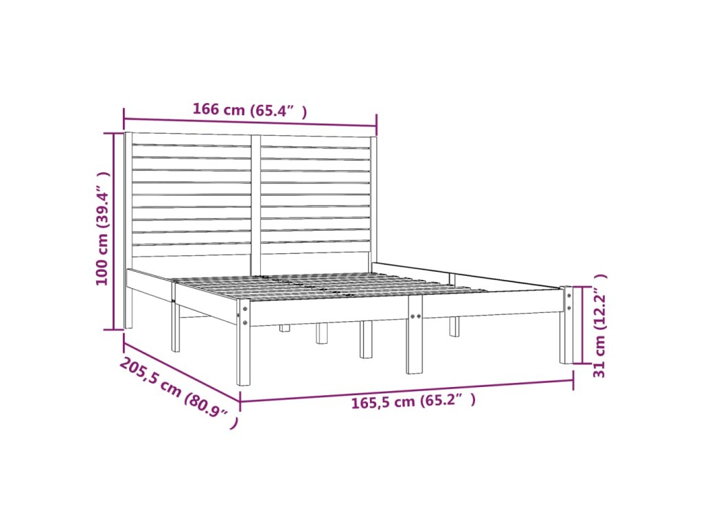 - Celkové rozměry rámu postele: 205,5 x 166 x 100 cm (D x Š x V)