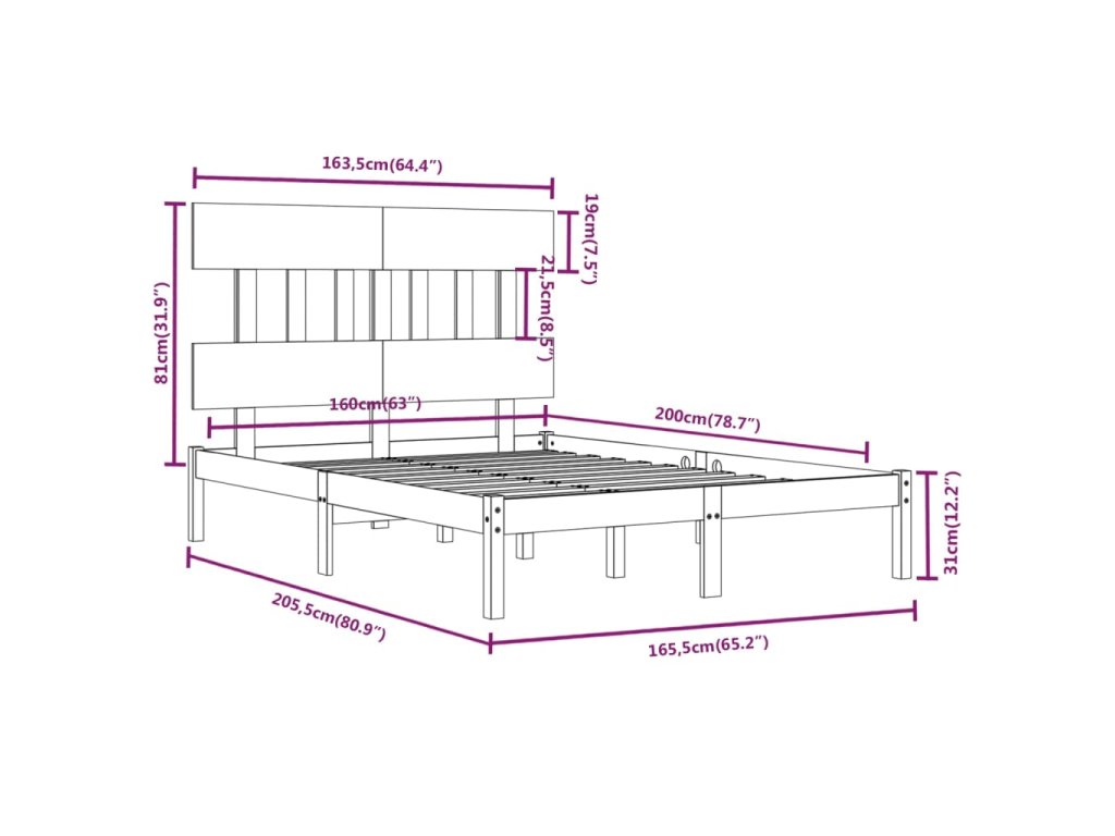 - Rozměry rámu postele: 205,5 x 165,5 x 31 cm (D x Š x V)