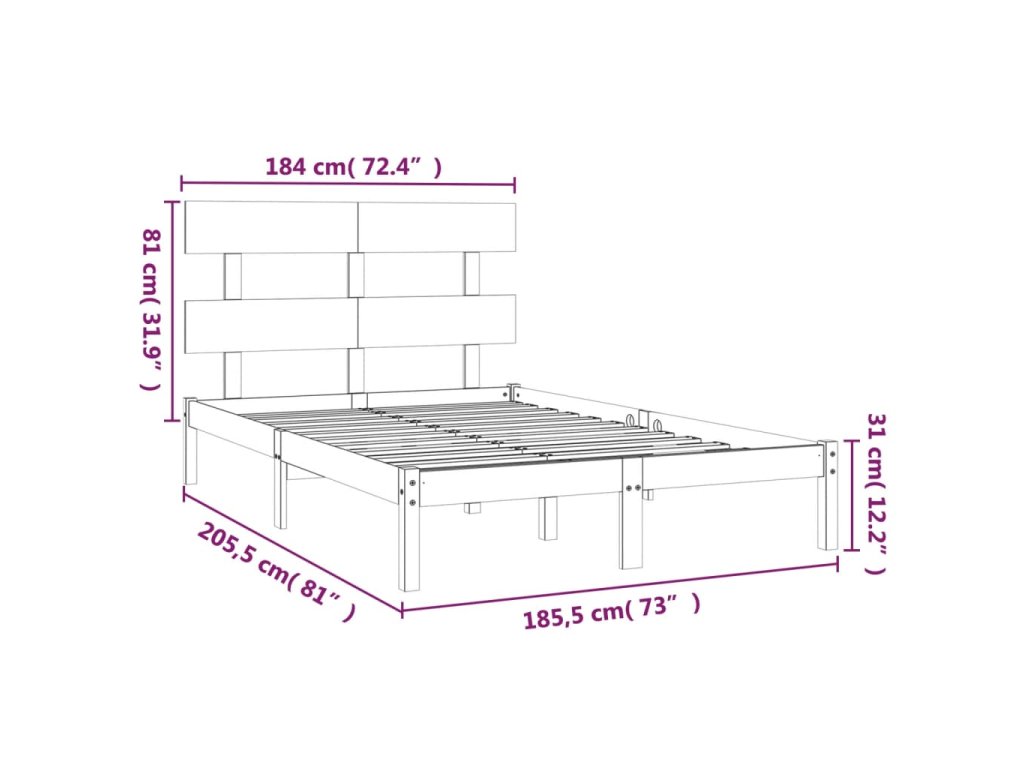 - Rozměry rámu postele: 205,5 x 185,5 x 31 cm (D x Š x V)