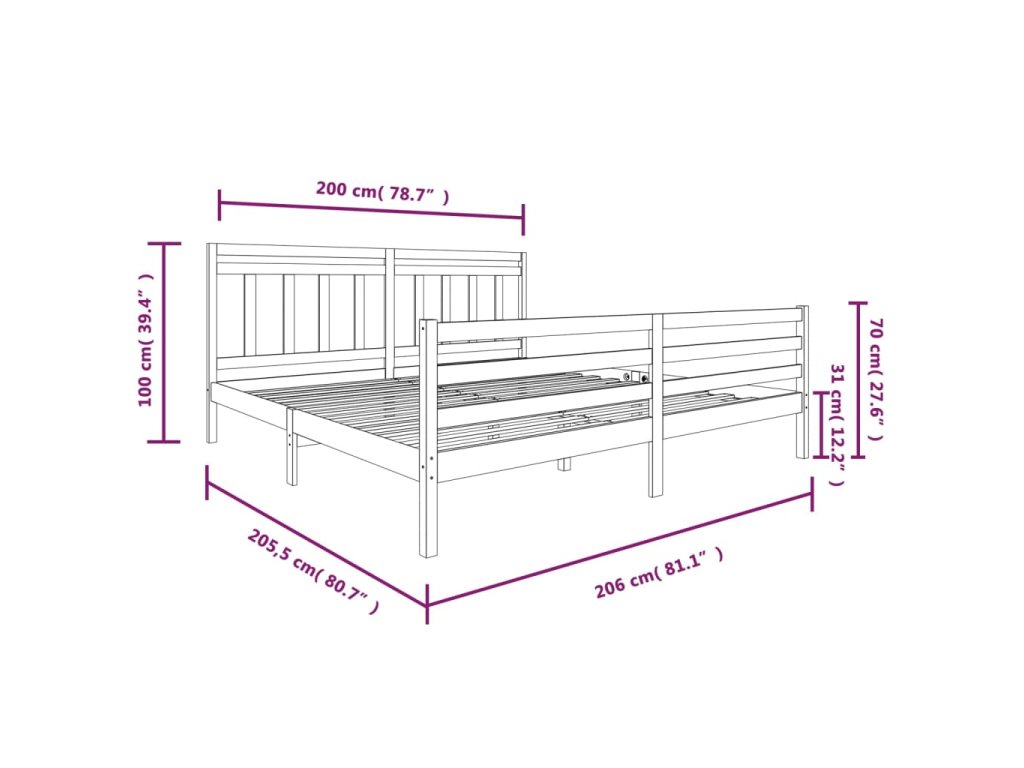 Rám postele bílý masivní dřevo 200 x 200 cm 3100675