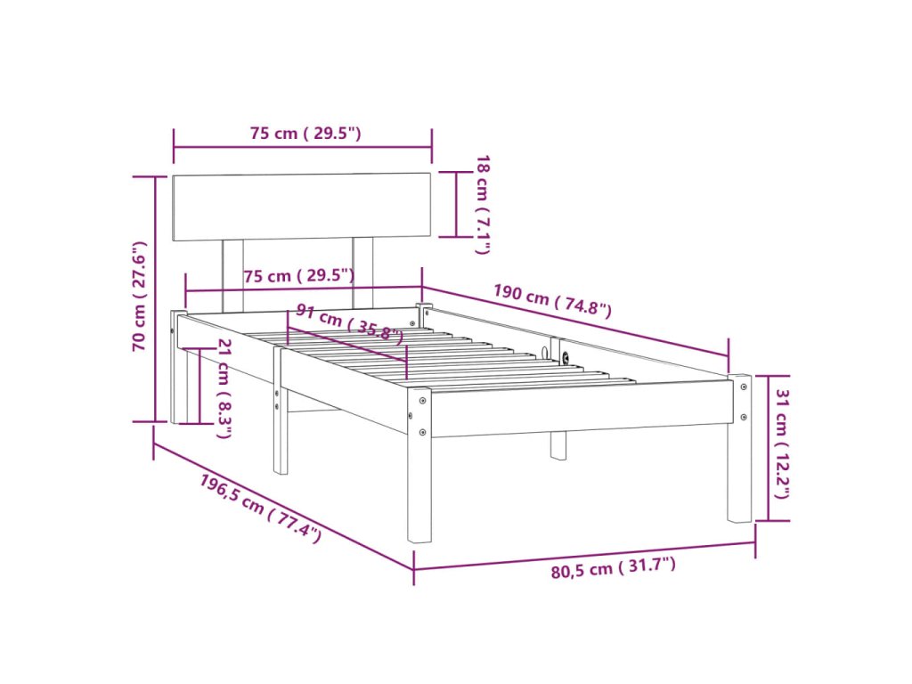 Rám postele je vyrobený z masivního borového dřeva, je tedy mimořádně odolný a má dlouhou životnost. Pevné lamely nabízí potřebnou oporu a klasické čelo vám umožní užívat si při čtení nebo sledování filmu pohodlí a ničím nerušený odpočinek. Na toto jednolůžko se hodí matrace o rozměrech 75 x 190 cm (2FT6 Small Single). Dopřejte si na této posteli kvalitní spánek každou noc!