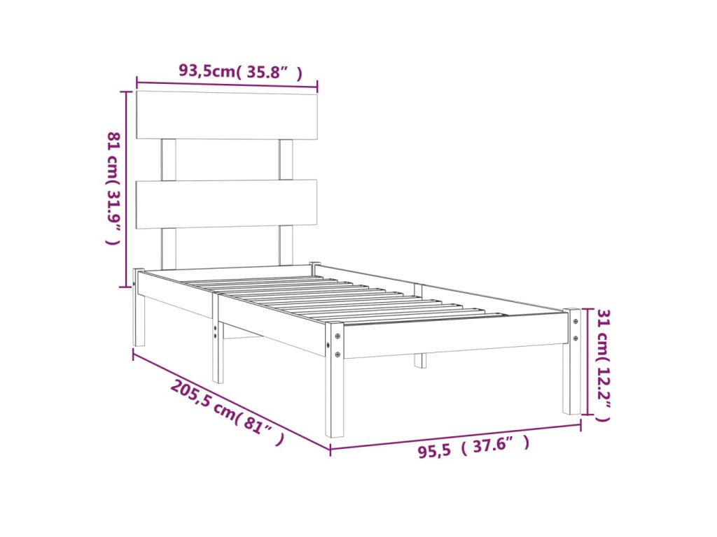 - Rozměry rámu postele: 205,5 x 95,5 x 31 cm (D x Š x V)