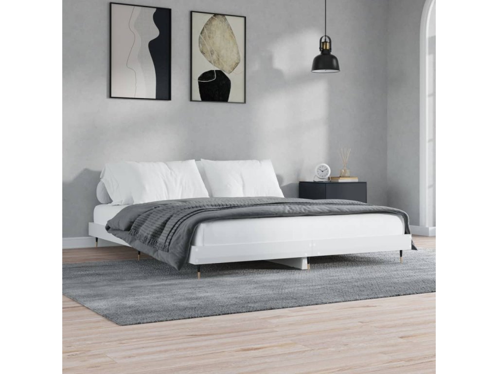 Rám postele bílý s vysokým leskem 180 x 200 cm kompozitní dřevo 832119