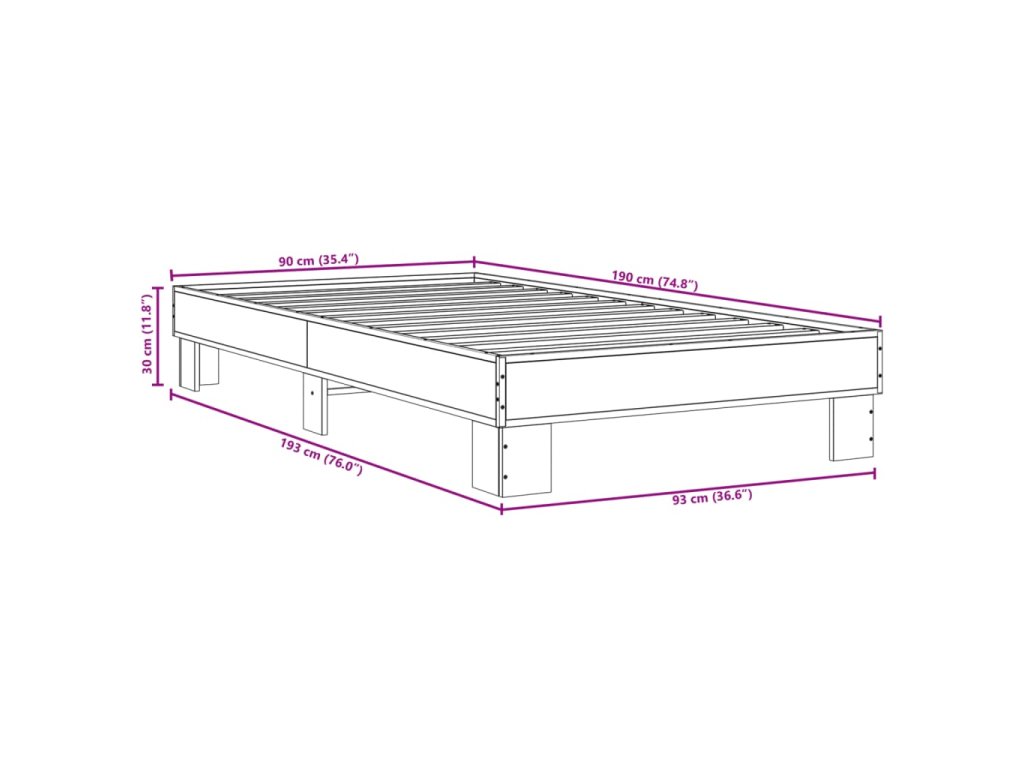 Rám postele černý 90 x 190 cm kompozitní dřevo a kov 845882