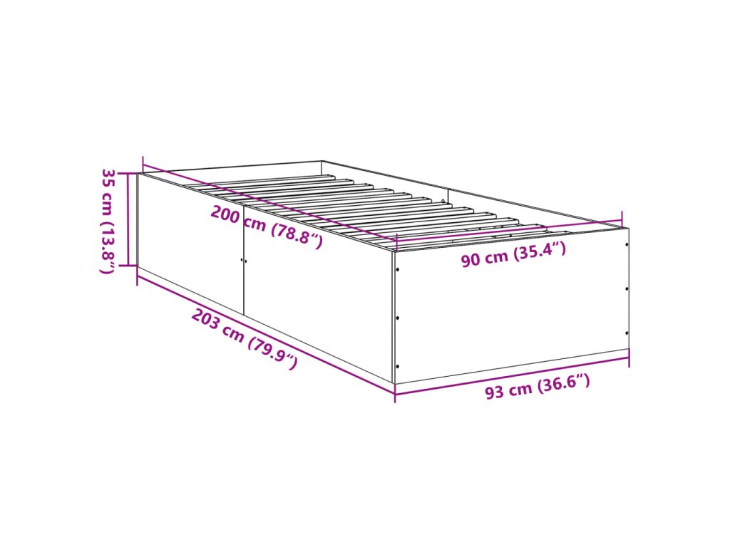- Celkové rozměry: 203 x 93 x 35 cm (D x Š x V)