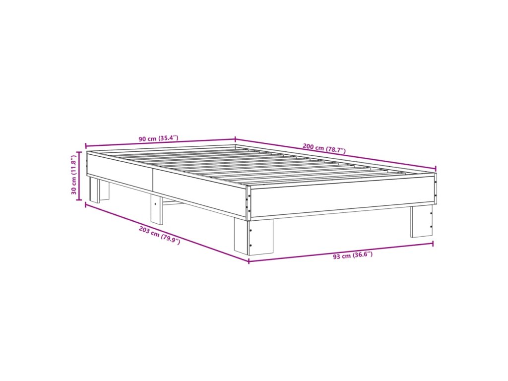 Rám postele černý 90 x 200 cm kompozitní dřevo a kov 845872