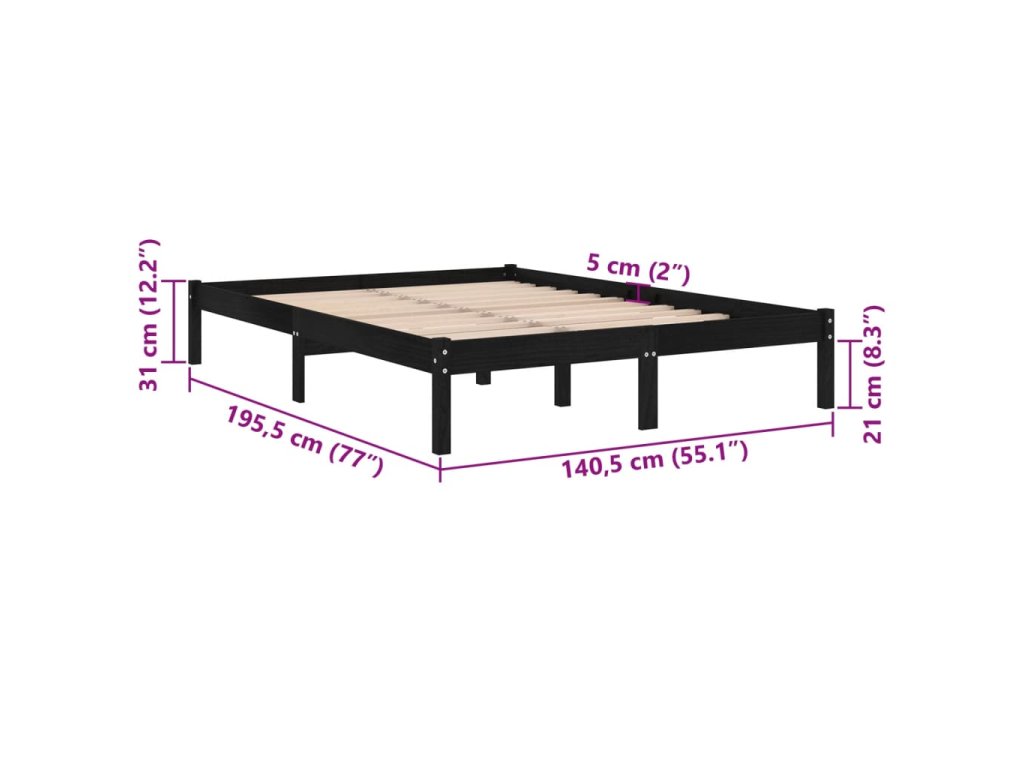 Rám postele černý masivní borovice 135 x 190 cm UK Double 809996