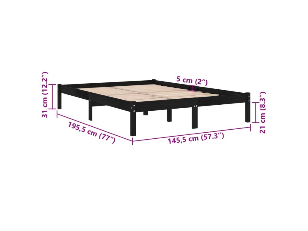 Rám postele černý masivní borovice 140 x 190 cm 810001