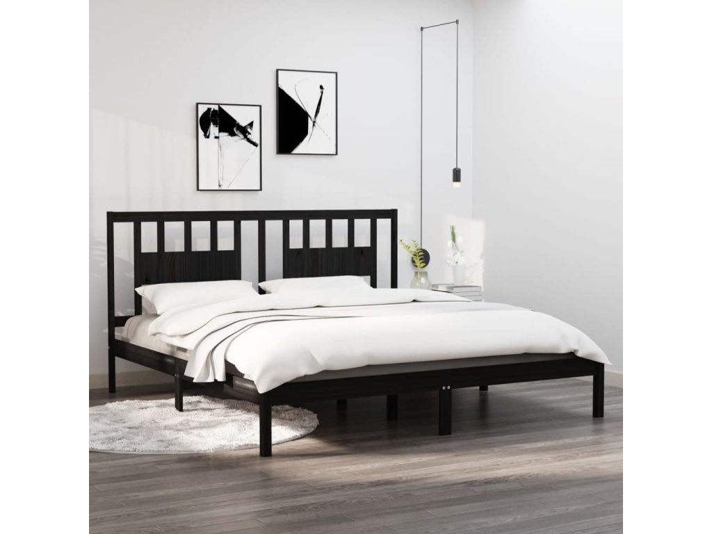 Rám postele černý masivní borovice 200 x 200 cm 3104087