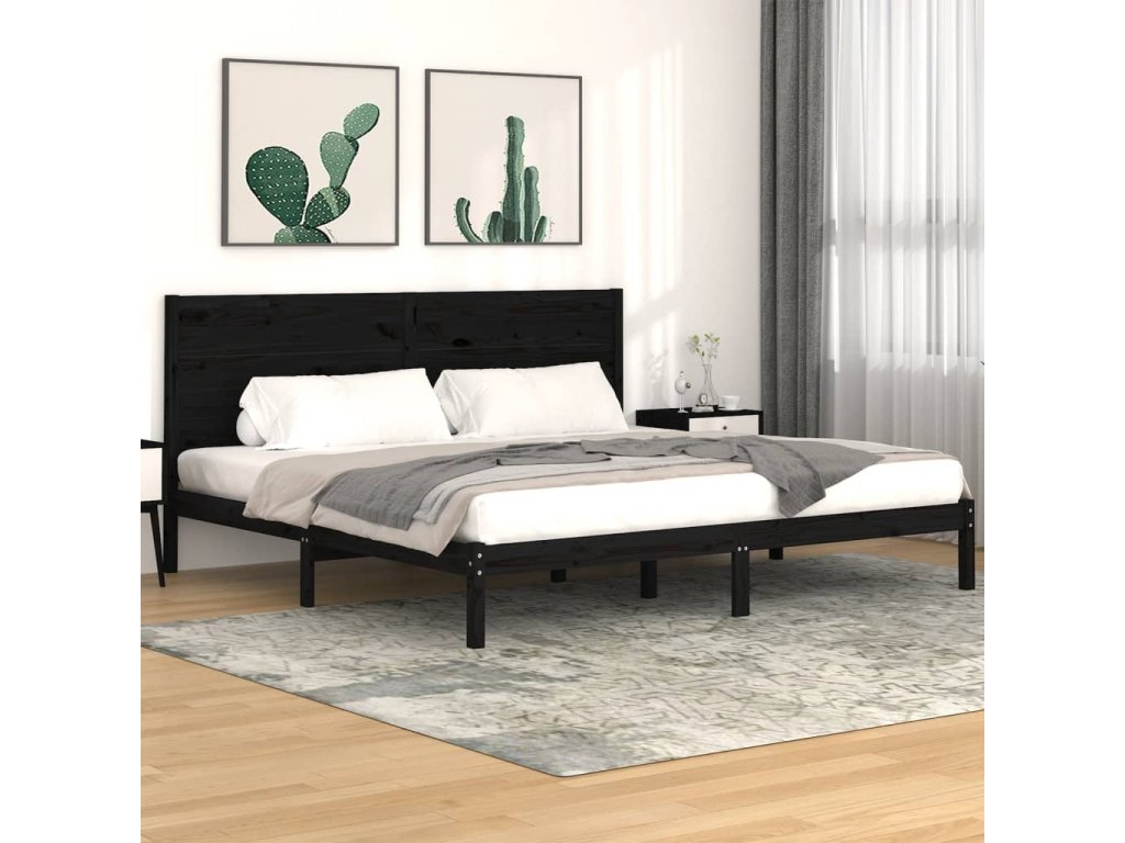 Rám postele černý masivní borovice 200 x 200 cm 3104177