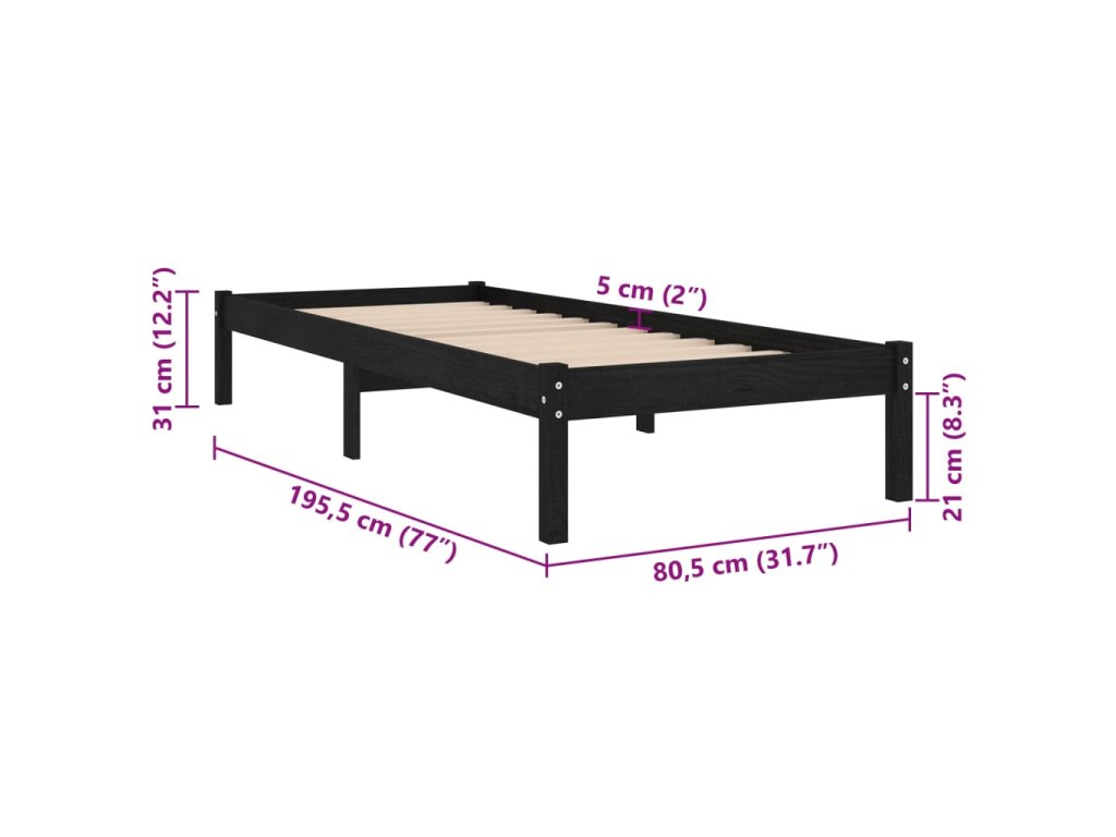 Rám postele černý masivní dřevo 75 x 190 cm malé jednolůžko 809981
