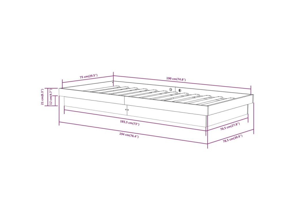 - Tento rám postele je vhodný pro matrace o rozměrech 75 x 190 cm (2FT6 Small Single)